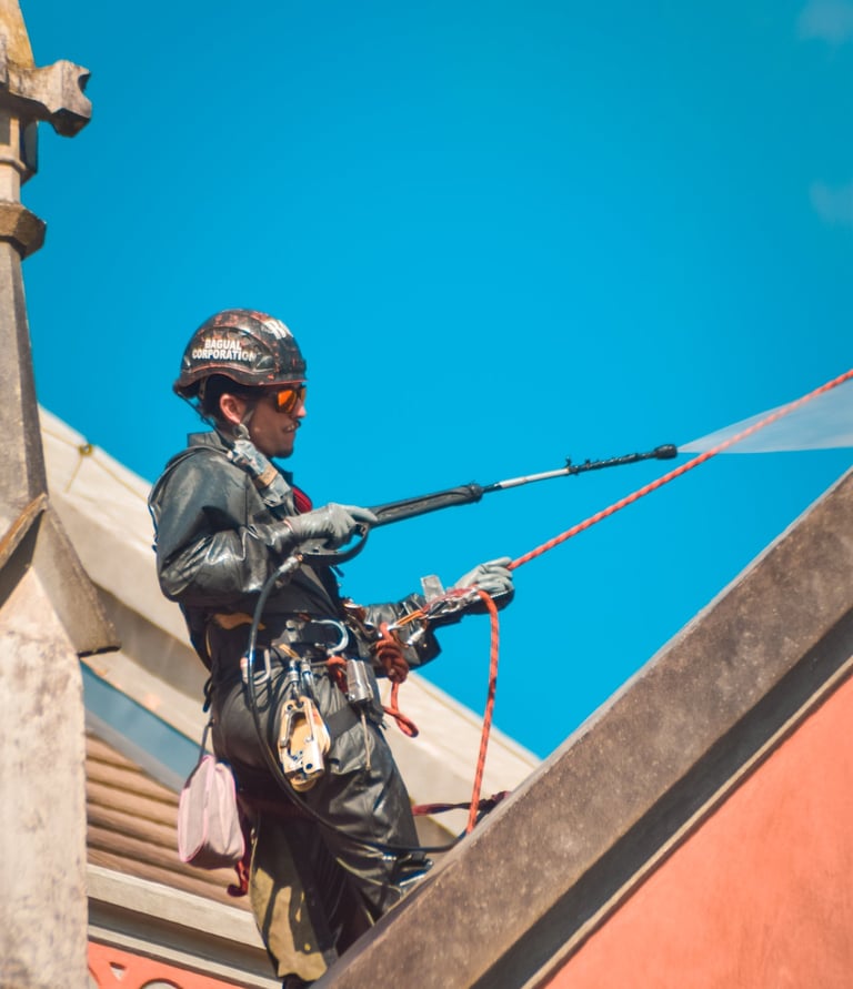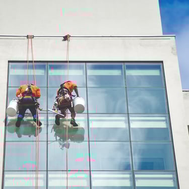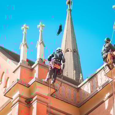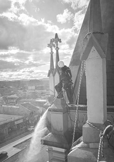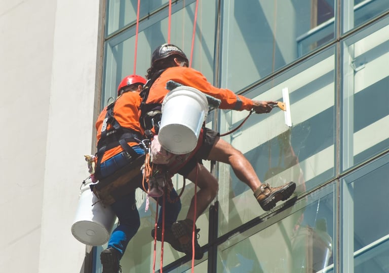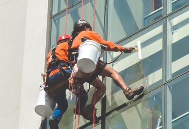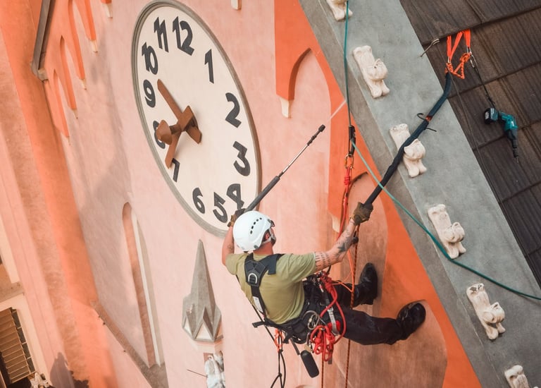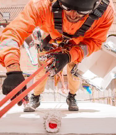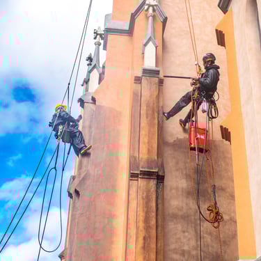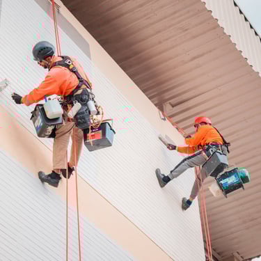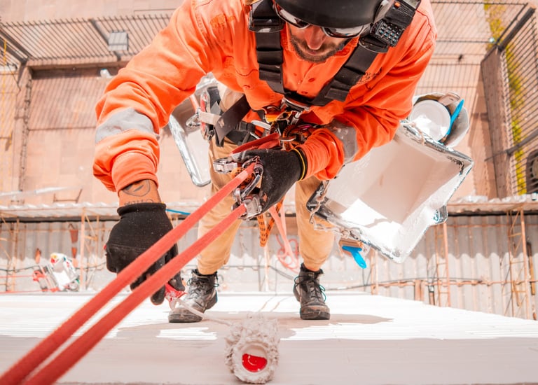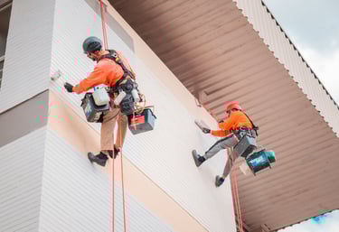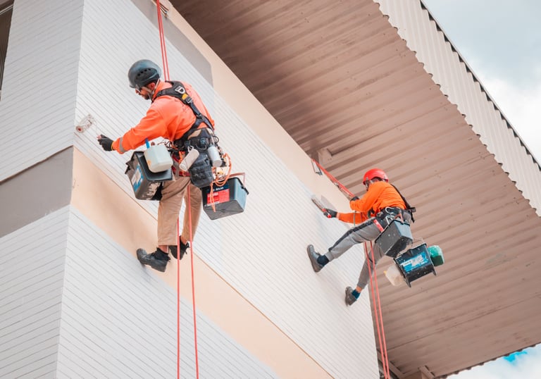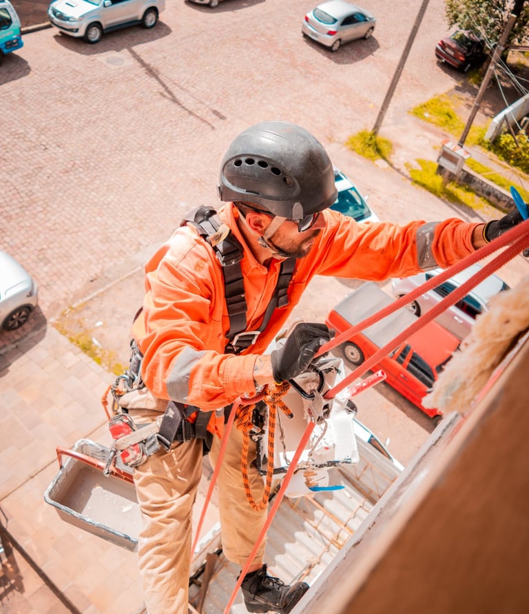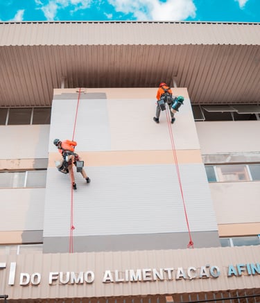 Serviços de pintura predial realizados com segurança e eficiência.